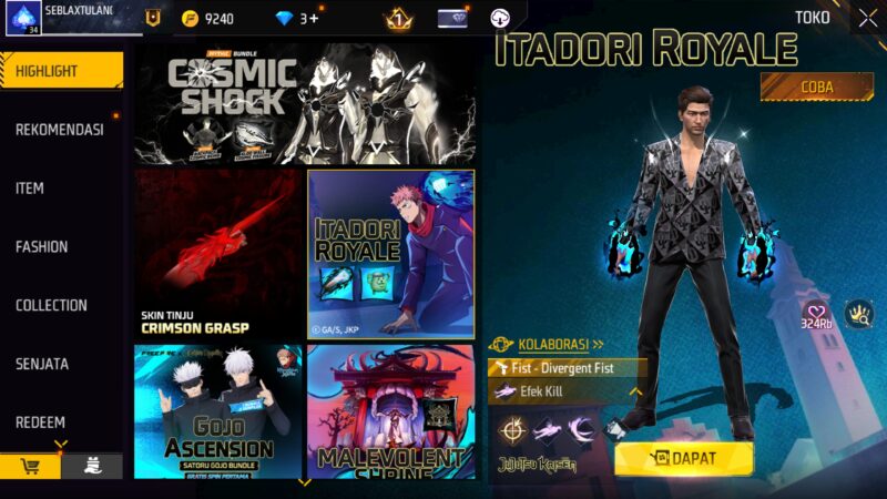 Melalui kolaborasi ini, dunia supranatural Jujutsu Kaisen diadaptasi ke dalam ekosistem Free Fire. Pemain akan menemukan berbagai elemen khas Jujutsu, mulai dari visual, karakter, hingga konsep kekuatan yang disesuaikan dengan mekanik permainan Free Fire.